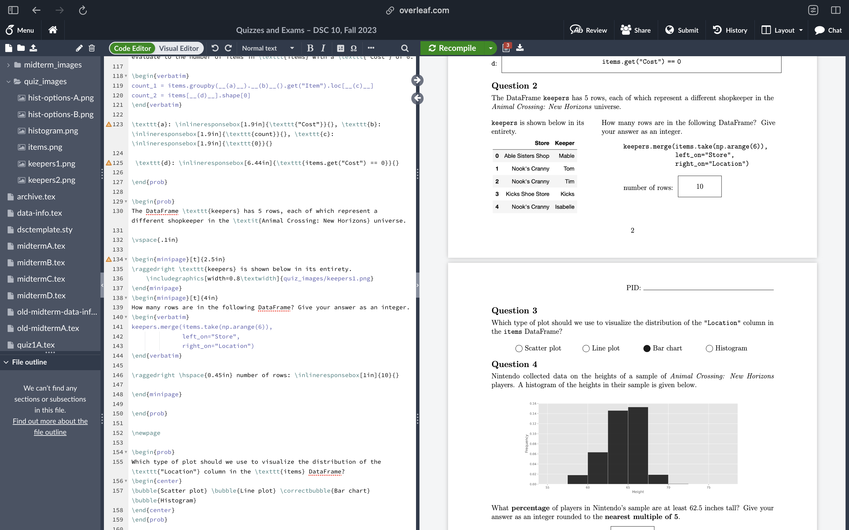 A more sophisticated way of using LaTeX is to format entire documents. We do this a lot — many DSC exams and homeworks you’ve taken were authored in LaTeX. To author documents in LaTeX, you need to have access to a LaTeX distribution. One way to do this is to download a distribution, like MacTeX, to your computer, but this can be a little finicky.